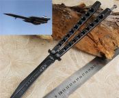 军标The One 黑鸟II一体柄蝴蝶甩刀全黑石洗