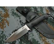 刃材:A2 全长:26.5cm 刃长:13.5cm 刃厚:0.53cm 表面:砂光、缎面拉丝 硬度:59-60hrc (真空油淬热处理) 手柄:G10 刀鞘:进口Kydex鞘