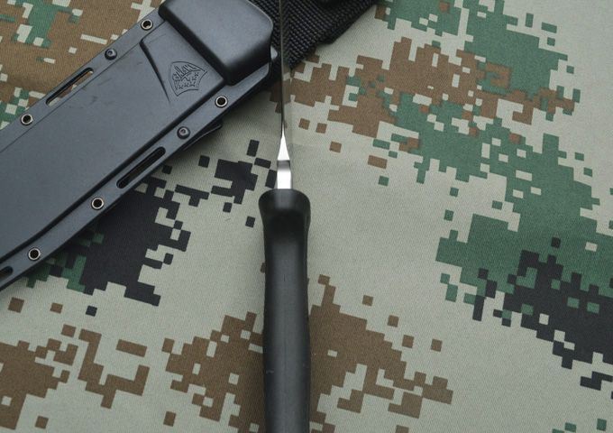 鹰飞凌经典版MPK12战术小直刀 全长:300mm 刃长:180mm 柄长:120mm 刃厚:6mm 硬度:59-60HRC 刃材:A2 表面:刀面整体,手工拉丝 柄材:Kraton 刀鞘:cancealex