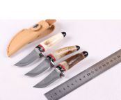 鹿角大马士小藏家 全 长: 约13.5cm 刃 长: 5.1cm 柄 长: 约7.8cm 刃 宽: 2.1cm(最宽处) 硬 度: 58HRC 刃 厚: 0.23cm 柄 材:野生鹿角 重 量:140 克(含包装) 刃 材: 大马士革 表 面: 特有的花纹原色 其 他: 配高档礼品盒.真皮套 大马士革钢花纹和把手木纹及颜色各异,以实物为准!