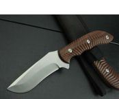 KT041沙漠风尘 全 长:233mm 刃 长:100mm 柄 长:123mm 刃 宽:32mm 刃 厚:3.8mm 刃 材:5Cr13 重 量:253g(含包装) 硬 度:57HRC 表 面:砂光 柄 材:檀木柄 锁 型:定锁 其 他:配尼龙套
