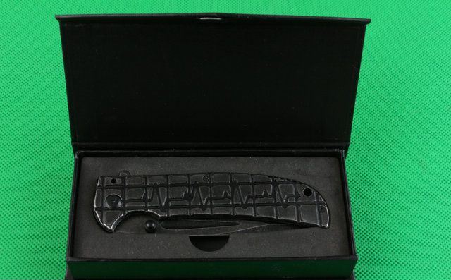 全 长:230mm 刃 长:90mm 柄 长:126mm 刃 宽:28mm 刃 厚:3.4mm 刃 材:440 重 量:250(含包装) 硬 度:57HRC 表 面:镀黑钛 柄 材:全钢 锁 型:线锁 其 他:配厂盒