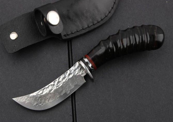 黄羊角-大马士革小猎刀 全 长:175mm 刃 长:77mm 柄 长:95mm 刃 宽:2.5mm 刃 厚:0.25mm 刃 材:大马士革 重 量:152g(含包装) 硬 度:58HRC 表 面:大马士革原色 柄 材:钢头+黄羊角 锁 型:定锁 其 他:配牛皮套+纸盒