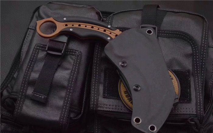 托德·贝格征服者爪刀(土豪金、石洗) 全 长:250mm 刃 长:100mm 柄 长:150mm 刃最宽:45mm 刃 厚:6mm 刃 材:8cr18mov 重 量:560g(含包装) 硬 度:59HRC 表 面:石洗 柄 材:钢一体柄+G10条 锁 型:定锁 其 他:配k鞘+牛皮纸盒子