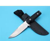 博尔特征伐直刀 全 长: 265mm 刃 长: 131mm 刃 厚: 6.0mm 刀 宽:35.5mm 表 面: 精美纯手工砂光,幼拉丝 类 型: 以锋利度.韧性保持度.砍削最出色,超强立体感刃线 开刃方式:二次开刃 刃 材: D2 热处理方式:真空淬油深冷热处理 硬 度: 不低于60-61HRC 柄 材: 黑色G10 净 重: 364克(不含包装) 刀 鞘: K鞘