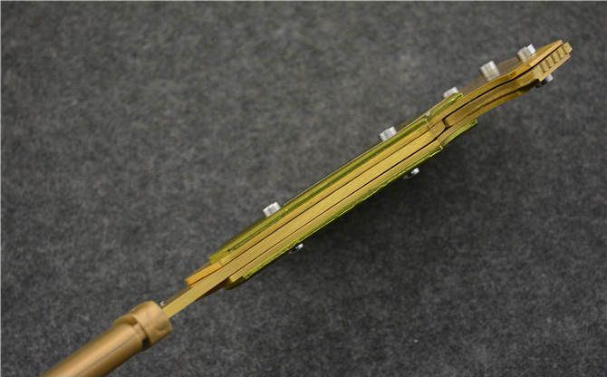土豪金加强版穿越火线斧 全长:39cm 刃宽:16cm 刃厚:3cm 刃材:3CR13 硬度:54HRC 表面:镀钛金 柄材:ABS 柄长:17CM 净重:920克 毛重:1120克 刀鞘:仿皮套