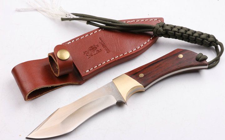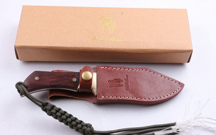 山猪狂奔小直刀 全长:22.0cm 刃长:11.8cm 柄长:11.2cm 刃厚:4.2mm 刃宽:3.0cm 刃材:D2 柄材:龙骨结构+黄檀木 硬度:59HRC 净重:250克 毛重:350克(含包装物) 表面处理:砂光 刀套:真皮套 包装:原厂黄色纸盒