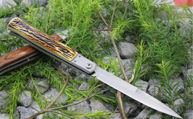 俄罗斯民族K01强力侧跳(彩木、仿骨柄) 全长:30CM 刃长:13CM 刃厚:0.23CM 刃宽:2CM 重量:200克 刃材:420不锈钢 柄材:仿骨柄+彩木柄