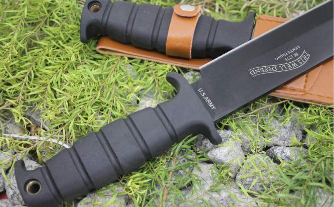 华尔特陆军三色户外直刀 全 长:37cm 刃 长:25.0cm 柄 长:12.0cm 刃 宽:4.8cm(最宽处) 刃 厚:3.7mm 刃 材:440 硬 度:55HRC 刀 柄:软塑柄 表 面:砂光 发黑 重 量:600.0克 备 注:带皮套