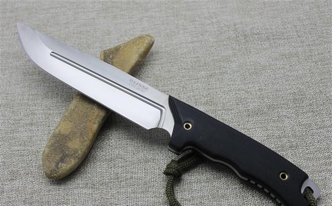 山猪冒险者直刀 全 长: 30cm 刃 长: 16cm 柄 长: 14 刃 材: 7CR13MOV 硬 度: 58 表 面: 砂光 刃 厚: 0.37cm 柄 材: G10柄 刀 重:360克 总 重: 650克 刀 鞘: 尼龙套