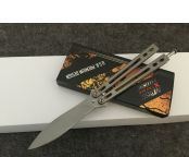 MT战狐镀钛甩刀 全 长:220mm 刃 长:90mm 柄 长:121mm 刃 宽:20mm 刃 厚:2.8mm 刃 材:3Cr13Mov 重 量:171g(含包装) 硬 度:55HRC 表 面:镀钛 柄 材:钢柄 锁 型:甩刀 其 他:配彩盒
