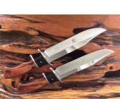 全 长:31.5cm 刃 长:18cm 刃 宽:3.6cm(最宽处) 刃 厚:3.9mm 柄 长:13.5cm 表 面:拉丝+镜光 刃 材:3CR13 硬 度:57HRC 柄 材:双钢头雕花+进口彩木 重 量:376克(含包装) 包 装:尼龙套