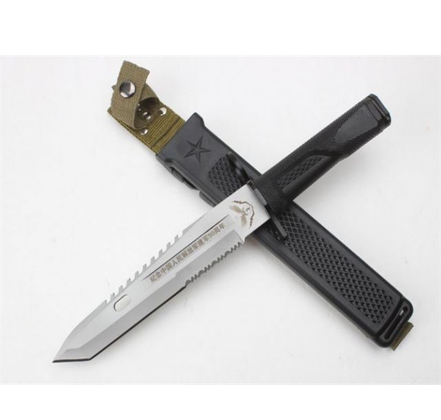 使命复仇者90周年纪念刀 全 长:33.8CM 刃 长:20.8CM 柄 长:12.8CM 刀 身最大宽度:3.6.CM 刀 厚:0.53CM 刃 面:喷砂 毛 重: 564克(含k鞘) 钢 材:7CR15 钢硬度:57 刀柄:绝缘强化胶 配塑胶鞘 彩盒