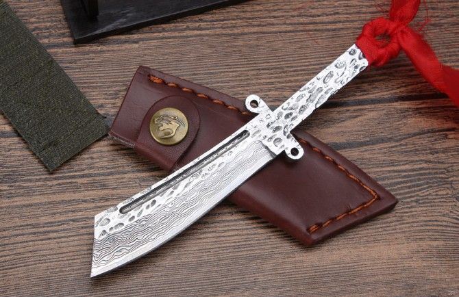 迷你纪念大马士革红军刀 全 长: 16.1cm 刃 长: 8.3cm 柄 长: 7.5cm 刃 宽. 2.1cm 硬 度: 59HRC 刃 厚: 0.35cm 重 量: 156克含包装 刃 材: 大马士革钢 表 面: 大马士革钢特有的花纹原色 其 他: 刃口锋利,真头层牛皮套,礼品纸盒