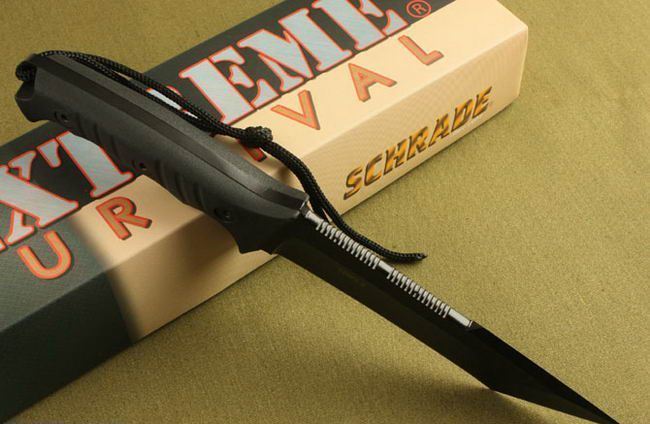 施拉德3号战术直刀 全 长:30cm 刃 长:15cm 柄 长:14cm 刃 厚:5.5mm 刃 材:5CR13 硬 度:57HRC 净 重:410g 总 重:700g(包括纸盒和刀鞘) 柄 材:工和橡胶 表 面:发黑钛 刀 鞘:CORDURA(科杜拉)